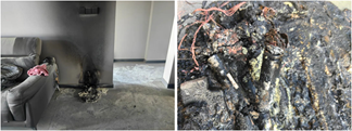 1 2024 年 2 月,廣東省梅州市一房屋起火,墻體、地面全被熏黑,在客廳角落的掃地機(jī)器人被燒得面目全非,家中兩只貓咪也不幸死亡,起火原因系掃地機(jī)器人內(nèi)部鋰電池發(fā)生熱失控蔓延成災(zāi)。