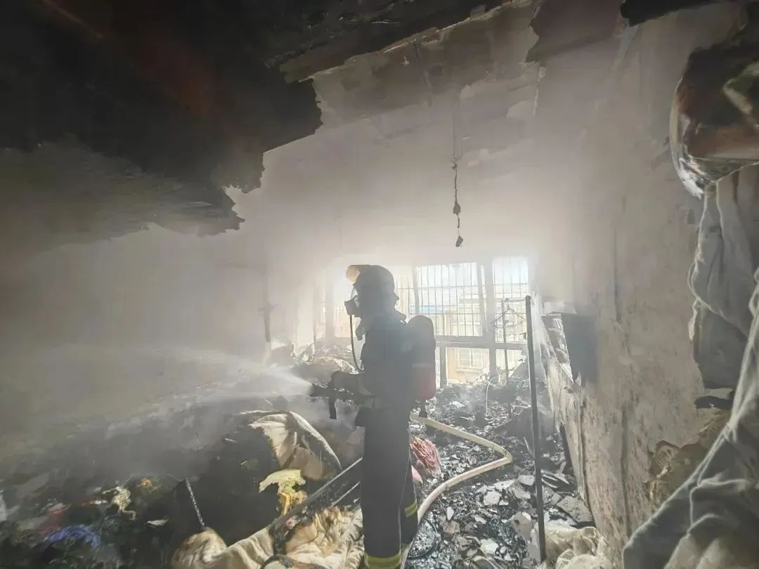 消防員到達(dá)現(xiàn)場(chǎng)后了解到,起火點(diǎn)位于居民樓6樓一臥室內(nèi),消防立即根據(jù)現(xiàn)場(chǎng)情況展開撲救。