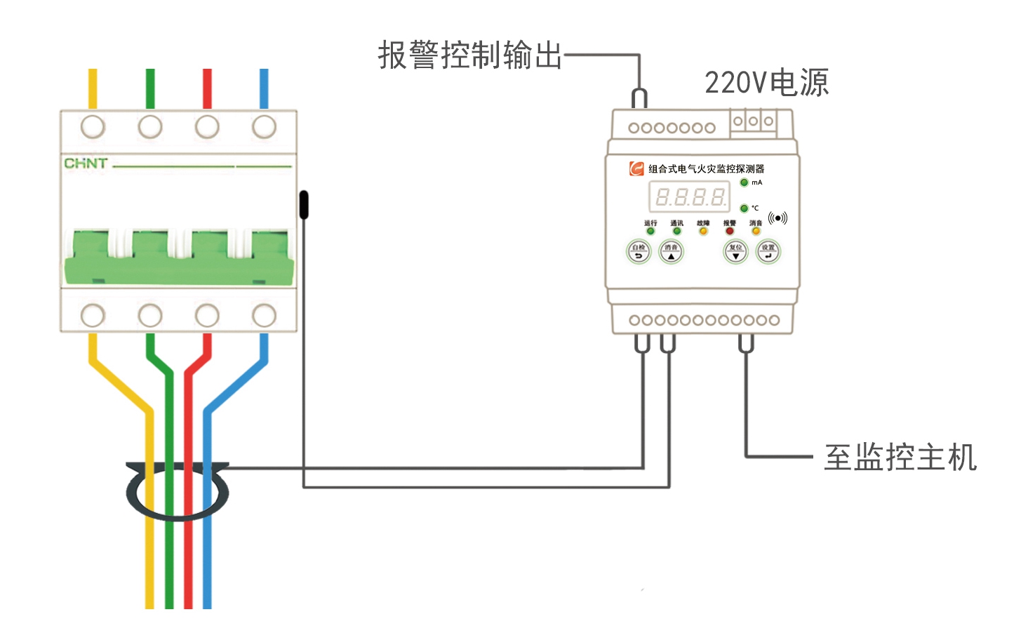 ●報警設(shè)定:100-999mA 、溫度60℃ ●報警輸出:無源觸點(AC220V5A)