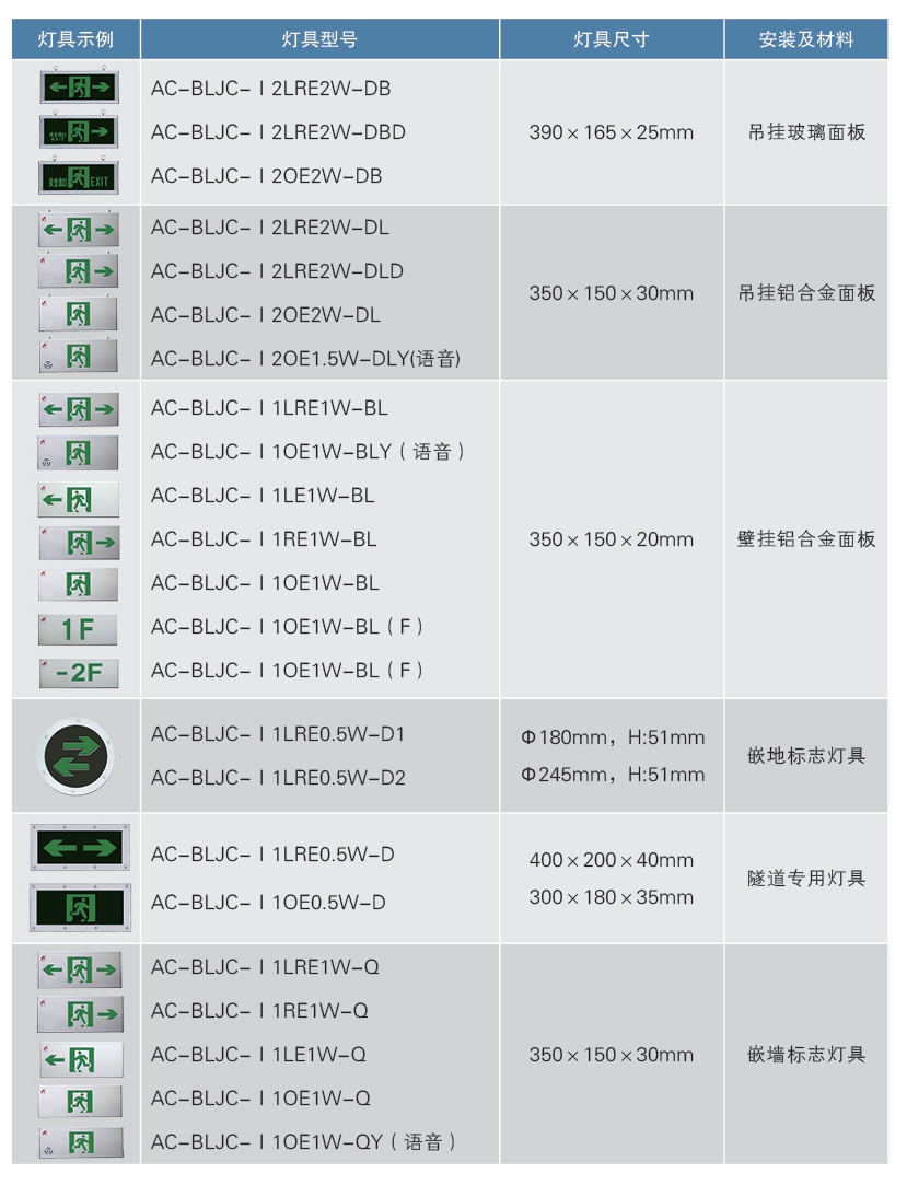 ■ 應(yīng)急標志類燈具匯總表